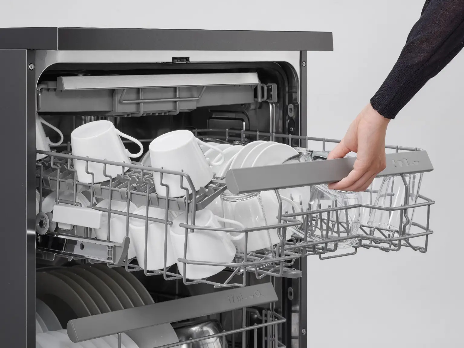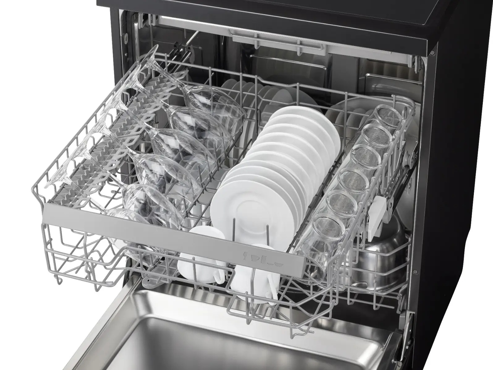 Máy trang bị 7 chương trình: rửa mạnh, diệt khuẩn, tự động, tiêu chuẩn, tráng, tự vệ sinh và sấy độc lập — đáp ứng mọi nhu cầu từ rửa nhanh hằng ngày đến vệ sinh sâu sau các bữa tiệc lớn.