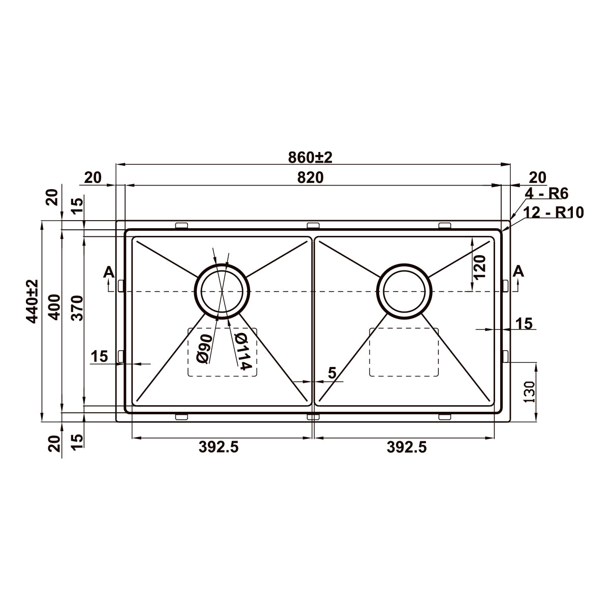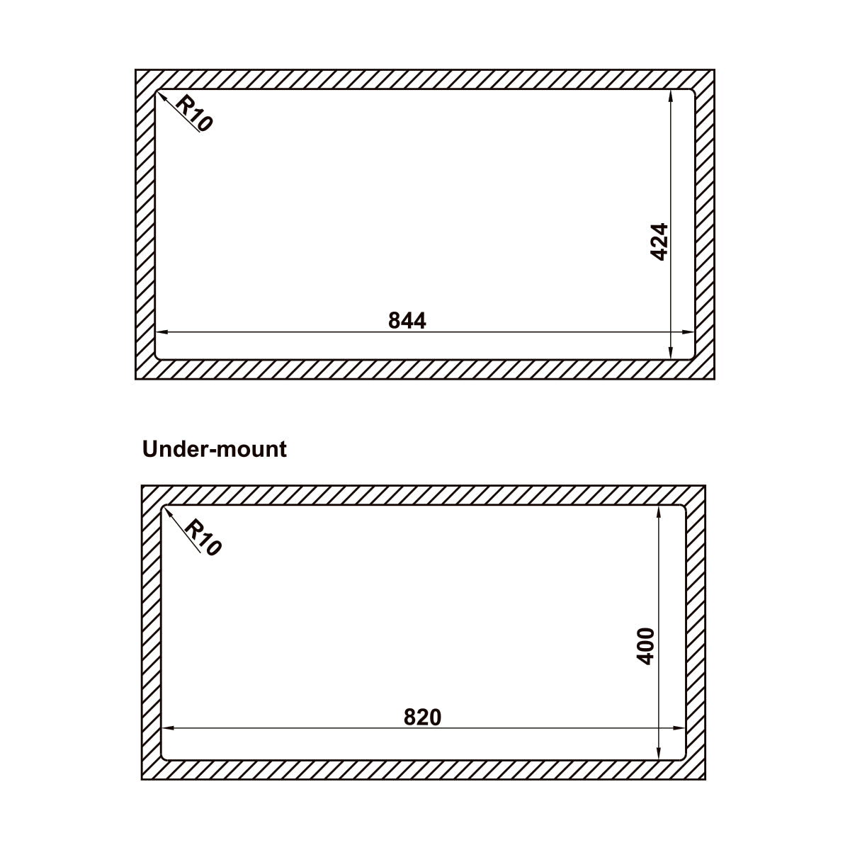 - Kích thước tổng 860 x 440 mm, phù hợp tủ bếp 900–1000 mm
