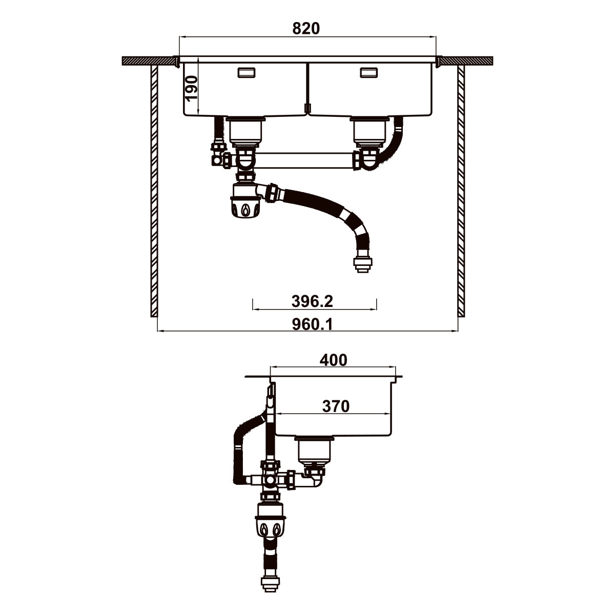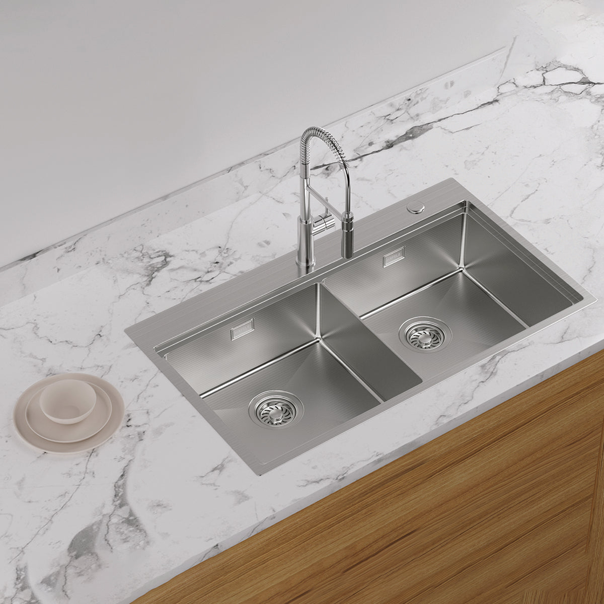 - Cấu hình: 2 hố rửa (double bowl)