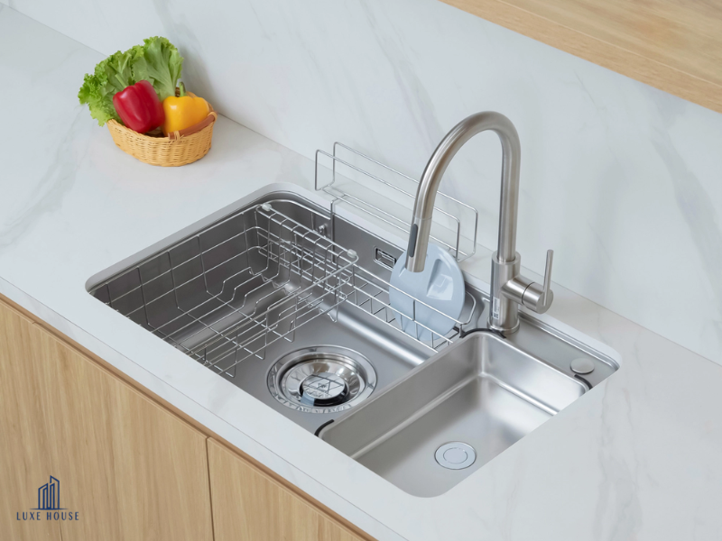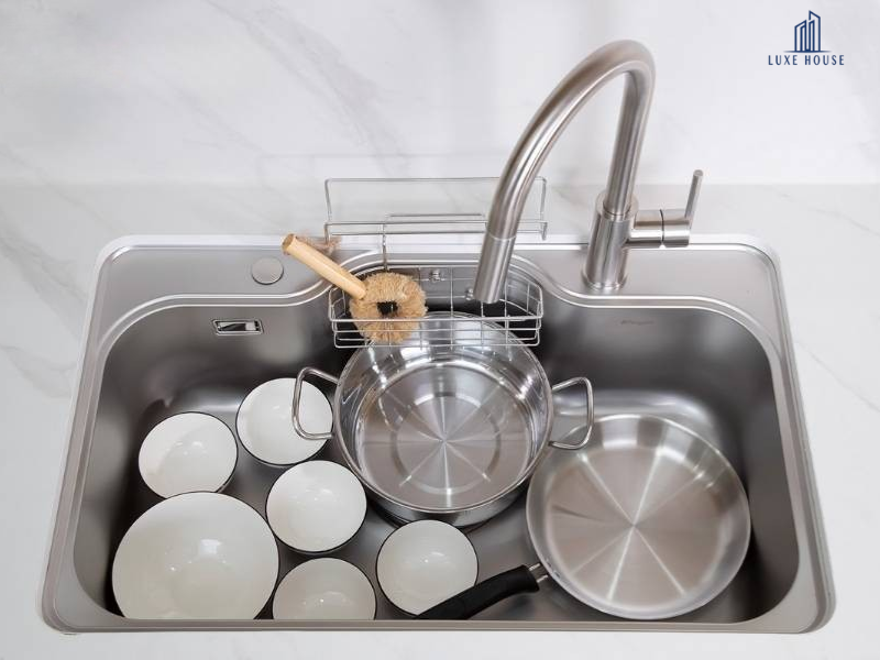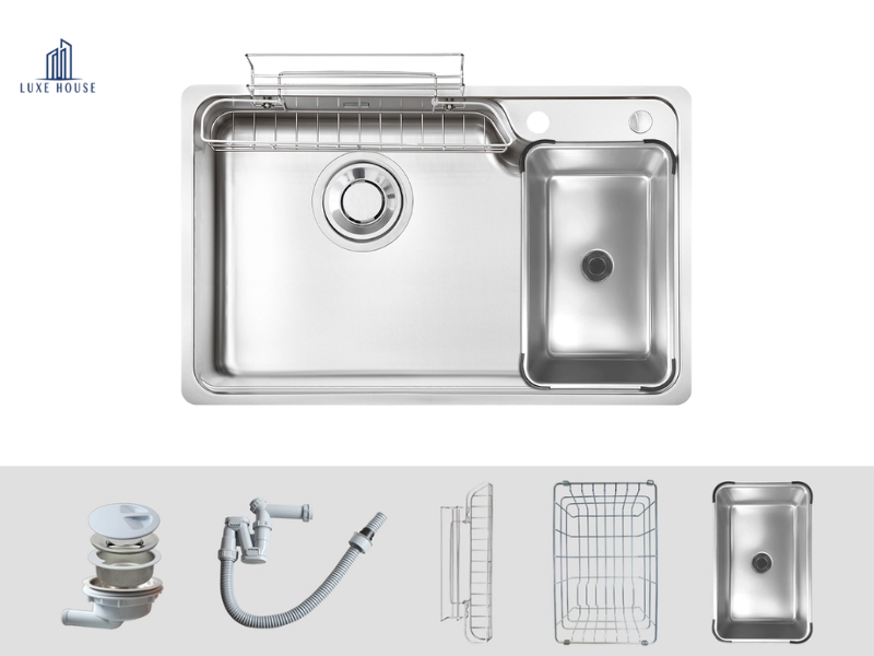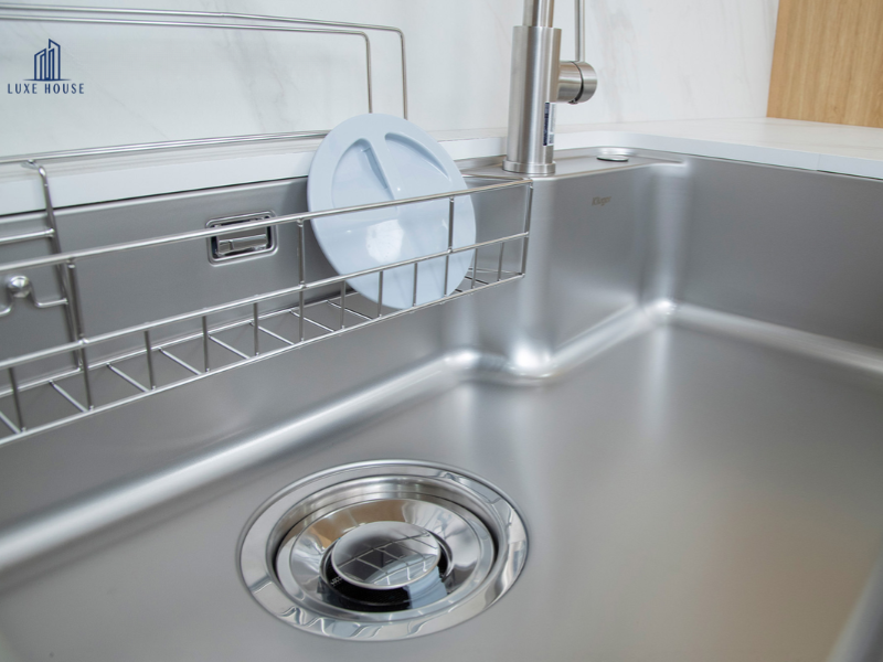 Thiết kế chậu rửa bát 1 hố sâu 210mm mang lại không gian thao tác rộng rãi, hạn chế bắn nước ra ngoài. Phiên bản Plus đi kèm bộ phụ kiện tiện ích gồm bát rác 3 lớp, siphon Z SLIM, giỏ inox và chậu rửa nhỏ, giúp tối ưu trải nghiệm sử dụng.